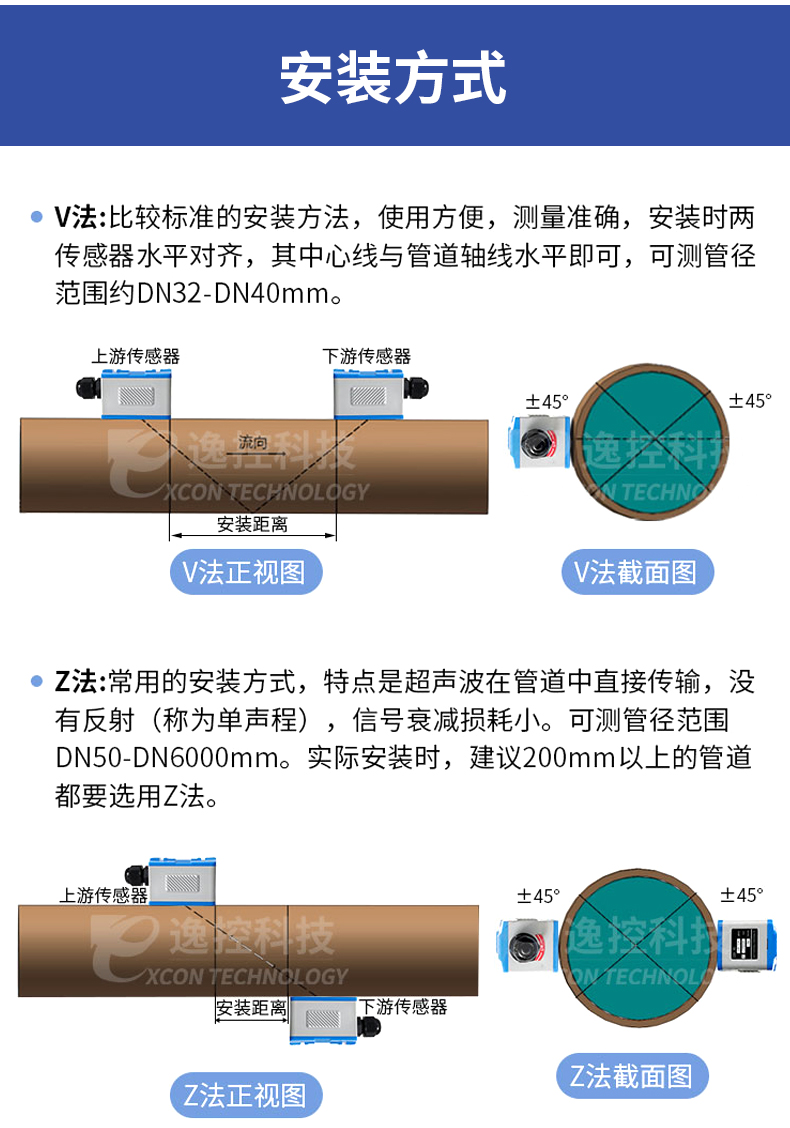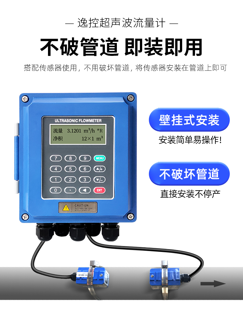 超聲波流量計(jì)的安裝簡(jiǎn)單便捷,只要選擇一個(gè)合適的測(cè)量點(diǎn),把測(cè)量點(diǎn)處的管道參數(shù)輸入到流量計(jì)中,然后把傳感器固定在管道上即可。 選擇安裝點(diǎn)是能否正確測(cè)量的關(guān)鍵,選擇安裝點(diǎn)必須考慮下列因素的影響:滿管、穩(wěn)流、結(jié)垢、溫度、壓力、干擾等。