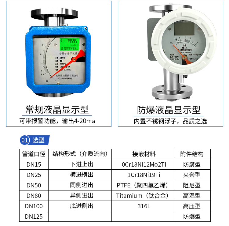 LZ系列金屬管浮子流量計(jì)結(jié)構(gòu)簡單、工作可靠、準(zhǔn)確度高、適用范圍廣。與玻璃轉(zhuǎn)子流量計(jì)相比較能耐較高的壓力。LZ系列流量計(jì)具有就地指示、電遠(yuǎn)傳、限位開關(guān)報(bào)警、耐腐蝕、夾套型、阻尼型和防爆等品種。