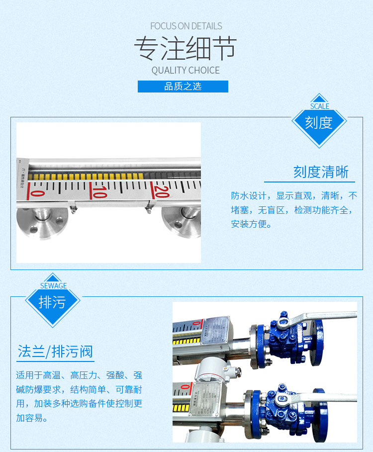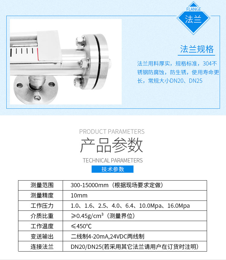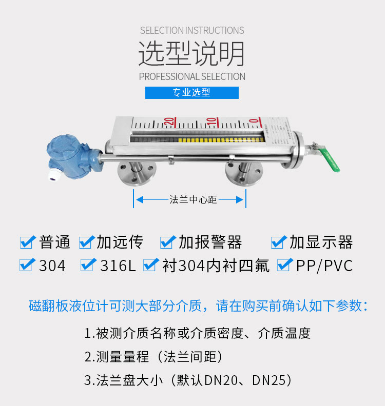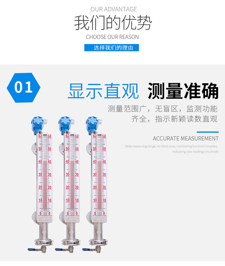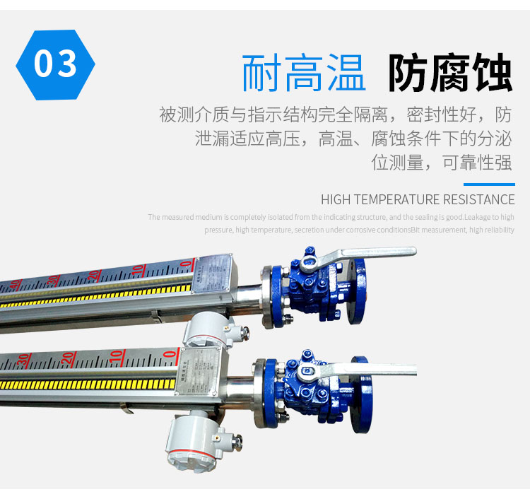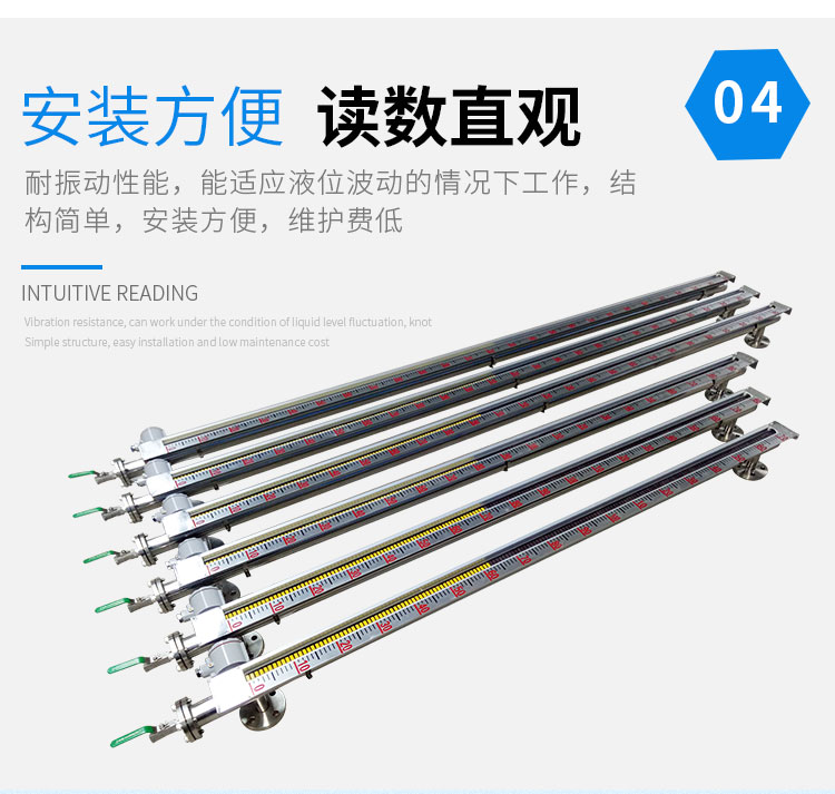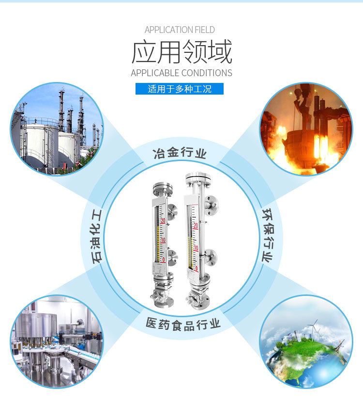 磁性液位計也稱磁翻柱、磁翻板、磁性浮子液位計,可以在高溫、高壓、高粘度和強腐蝕等條件下,安全可靠地測量液位,讀數(shù)直觀,顯示醒目,測量范圍大。該系列產(chǎn)品廣泛用于電力、石油、化工、冶金、環(huán)保、醫(yī)藥、食品等各行業(yè)過程中的液位測量和控制。 磁性液位計采用磁性翻板,可在現(xiàn)場直接顯示,無需外加電源。如加配上、下限開關(guān)輸出,可實現(xiàn)遠距離報警、限位控制;如加配變送器,可實現(xiàn)液位的遠距離指示、檢測與控制。
