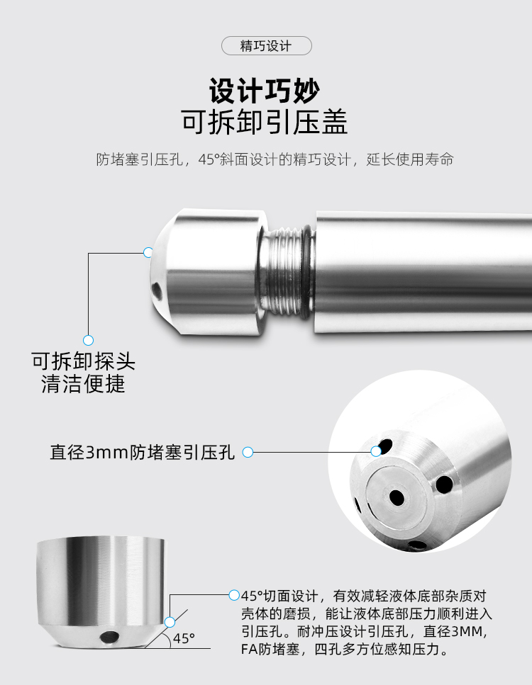 穩(wěn)定性好,滿度、零位長期穩(wěn)定性可達0.2%FS/年。測量介質(zhì)溫度在0~300℃范圍內(nèi),溫度飄移低于0.2%FS,在整個允許工作溫度范圍內(nèi)低于0.5%FS。 安裝方便、結(jié)構(gòu)簡單、經(jīng)濟耐用。