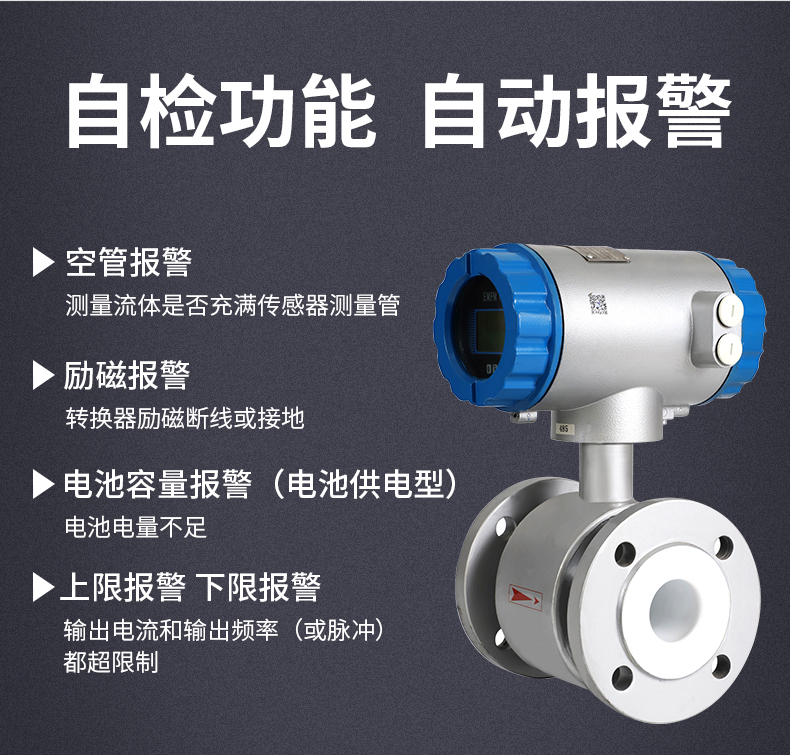 在日常中偶爾會有非滿管現(xiàn)象,這種現(xiàn)象可以看做是液體中含有氣泡的典型情況。當(dāng)電極水平面低于介質(zhì)液面時,流量計前后采用直管段比較理想,測量數(shù)據(jù)比較穩(wěn)定。但是管內(nèi)上半部的氣體體積也被算成介質(zhì)流量,因此這種情況下得測量誤差較大。當(dāng)電極水平面高于介質(zhì)液面時,電磁流量計的測量回路處于開路狀態(tài),所測量的數(shù)據(jù)嚴(yán)重失真。處理這種介質(zhì)非滿管所產(chǎn)生的故障可有如下辦法: